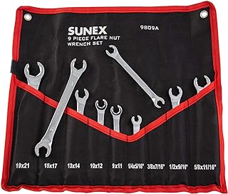 Sunex Tools 9809A Schlagmutternschlüssel-Set, 1/4 Zoll x 5/15 Zoll – 5/8 Zoll – 11/16 Zoll, 9 mm x 11 mm – 19 mm x 21 mm, komplett poliert, 9-teilig (inklusive Rollkoffer), SAE & metrisch