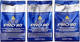 80% 4 COMPONENTS PROTEIN. WITH 4650 MG BCAA PER SERVING. FAT FREE, SUGAR FREE. 9 VITAMINS, 3 MINERALS. Active PRO 80 ® Classic 450g. PRO 80 Classic Dose. For everyone who is looking for a top product and prefers neutral taste. Active PRO80 Classic Pur is a 4 component protein that, mixed with either water or milk, will become very creamy. Active PRO 80® - the protein bestseller in more than 3000 German premium fitness studios. Proven quality with unmatched taste - super creamy and currently available in 18 different flavours. Due to its different protein sources, Active PRO 80® supplies you with slow (casein), medium-fast (egg white) and fast (whey protein) proteins.