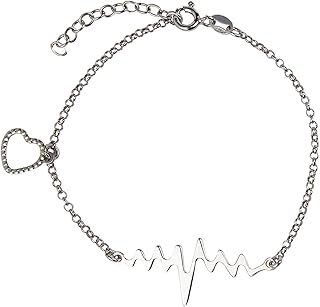 Damen Armband Herzschlag and Herz Anhänger 925 Sterling Silber Rhodiniert, Länge 21 cm
