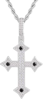 KRKC&CO Kreuz Anhänger Kette Iced Out, 14K Gold/Weißgold plattiert Perle Kreuz Anhänger mit 3mm 61cm Rope Kette, Zirkonia Steine Kreuzkette, Hip Hop Anhänger, Hip Hop Kette Herren Geschenke