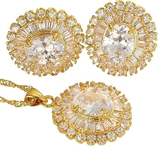 Blume Schmuckset Anhänger mit 45cm(18") Kette & Ohrstecker Ohrringe Ovalschliff Edelstein Zirkonia CZ [5 Farben erhältlich] in 18K Gelbgold Vergoldet, Einfache Moderne Eleganz
