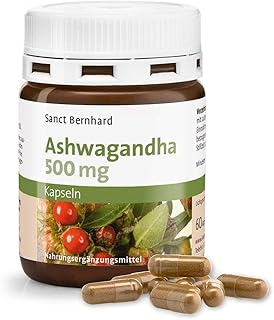 Sanct Bernhard Ashwagandha Kapseln mit 500 mg Ashwagandha-Extrakt davon 35 mg Withanolide je Kapsel, Inhalt 60 Kapseln