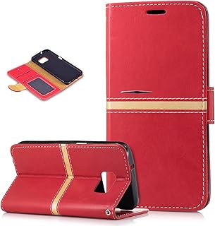 Kompatibel mit Galaxy S7 Hülle,Galaxy S7 Schutzhülle,PU Lederhülle Flip Hülle im Bookstyle Ständer Wallet Soft Silikon Magnetverschluss Kunstleder Hülle Tasche Tasche Schutzhülle für Galaxy S7,Rot