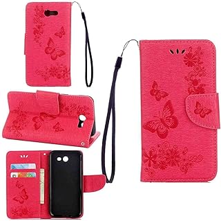 pinlu Schutzhülle Für Samsung J3 2017 (Euro Version) J330 Handyhülle Hohe Qualität PU Ledertasche Brieftasche Mit Stand Function Innenschlitzen Design Groß Schmetterling Rose Red