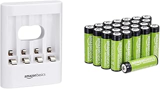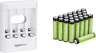 Amazon Basics AAA-Batterien, 800 mAh, wiederaufladbar, 16 Stück & Intelligentes, digitales Akku-Ladegerät für 4 AA-, AAA-Akkus