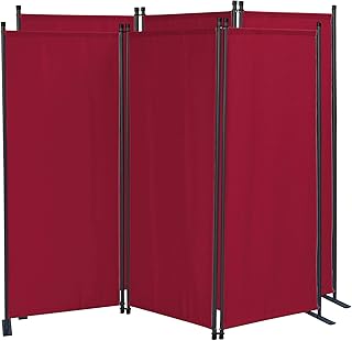 QUICK STAR Paravent 3 Teilig 170 x 165 cm Stoff Raumteiler Trennwand Balkon Sichtschutz Stellwand Faltbar Rubinrot