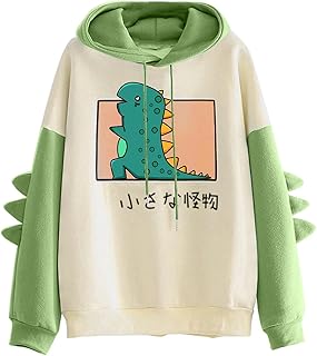 Kapuzenpullover Damen Elegant Kapuzenjacke Dinosaurier Hoodie für Frauen Teenager Mädchen Langarm Nette Kawaii Übergroße Sweatshirt Hoodies Kapuzenjacke Streetwear