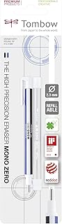 Tombow EHR-KUR Präzisionsradierer MONO zero und Nachfüllung runde Spitze, 2.3 mm Durchmesser, weiß/blau/schwarz