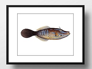 Din A4 Kunstdruck ungerahmt - Fisch - Hornfisch Hecht - Retro Vintage Meerestier Ozean Maritim Zeichnung Badezimmer Druck Poster Bild