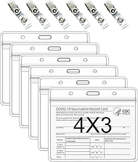 6 Stück mit 6 Clips, durchsichtig, horizontal, Namensschilder, Ausweishalter, 10,2 x 7,6 cm, wasserdicht, Kunststoff, transparent, wiederverschließbar, für Impfausweis