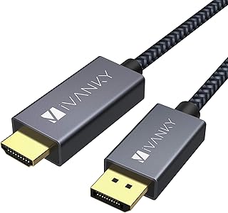 iVANKY DisplayPort auf HDMI Kabel, Verbindungskabel DP zu HDMI, High Speed Vergoldet DisplayPort HDMI Kabel für HDTV, Monitor, Projektor, Laptop, PC, AMD, NVIDIA und mehr - Nylon Geflochtener, 2M