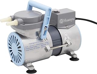 Huanyu Vakuumpumpe 160W Membranpumpe Ölfreie Unterdruckpumpe 0.42-2.1CFM Kompressor <50 dB Pumpe für Laborinstrumente (12L/min GM-0,2 (Einzelkopf))