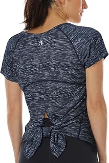 icyzone Damen Rückenfrei Sport T-Shirt Kurzarm Oberteil Yoga Tops Casual Shirt Loose Fit, 2er Pack