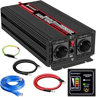 3000W KFZ Reiner Sinus Spannungswandler - Auto Wechselrichter 12v auf 230v Umwandler - Inverter Konverter mit 2 EU Steckdose und USB-Port - inkl. 5 Meter Fernsteuerung - Spitzenleistung 6000 Watt