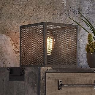 famlights Tischleuchte Saskia aus Metall in Silber eckig, 1-Flammig, E27, Industrial Design | edle Tischlampe für Wohnzimmer Schlafzimmer | Designerleuchte Würfel Nachttischlampe | Stehleuchte Vintage