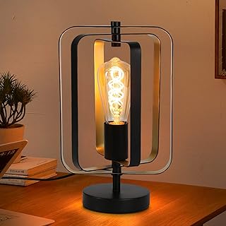 Wowatt Vintage Tischlampe Industrial Design mit 1-Flammige Schreibtischlampe inkl 4W E27 Edison Glühbirne 2200K Warmweiß Nachttischlampe Schwarz Metall Tischleuchte Retro für Wohnzimmer Schlafzimmer