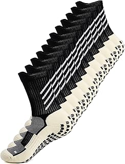 Rutschfeste sport Socken herren damen anti-rutsch Athleticsocke Pantoffelsocken mit Griff für fußball Basketball Yoga Wandern Trekking Laufen Radfahren, Schwarz/Weiß