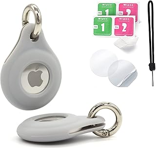 {2er Pack}, Airtag Anhänger, kompatibel mit Apple Airtags Schlüsselanhänger, Airtag Hülle + 2 Schutzfolien & 1 Nylonband , Apple Air Tag Anhänger, Airtag Case in Mehreren Farben (Grau)