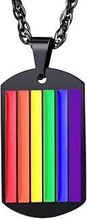 Regenbogen-LGBT Gay Pride Halskette/Armband Edelstahl/18k vergoldet/Schwarz Zylinder/Erkennungsmarke Anhänger mit Kette Unisex Homosexuell Modeschmuck Accessoire für Männer Frauen
