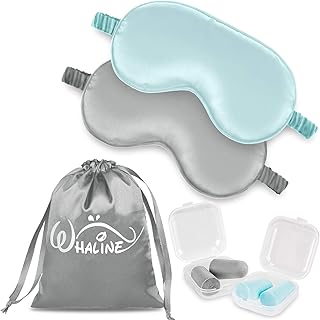 Whaline 2 Set Schlafmasken mit Ohrstöpsel und Aufbewahrungstasche Seide Augenmaske Seide Schlafmaske Kunstseide Augenmaske Seide für Nacht Reisen Nickerchen Meditation (grau, staubig blau)