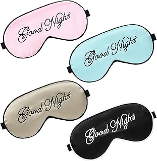 4 Stücke Seide Schlafmasken Augenmaske Weich Augenbinde Augenmaske Schlafen Augenblinder Verstellbar Gurt Satin Augen Schlafmaske für Damen und Männer (Rosa, Schwarz, Beige, Hellblau)